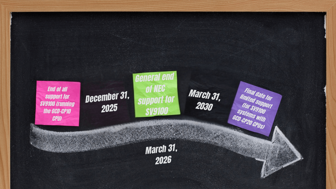 NEC has announced that core support for the SV9100 platform will end on March 31, 2026. While customers with the latest CPU module (the GCD-CP20) and an active Software Assurance plan can continue with limited technical support and software licenses through March 2030, the reality is that no major enhancements or new features are coming. For schools with the older GCD-CP10 CPU, critical support cuts off even earlier on December 31, 2025, with no extension path available.